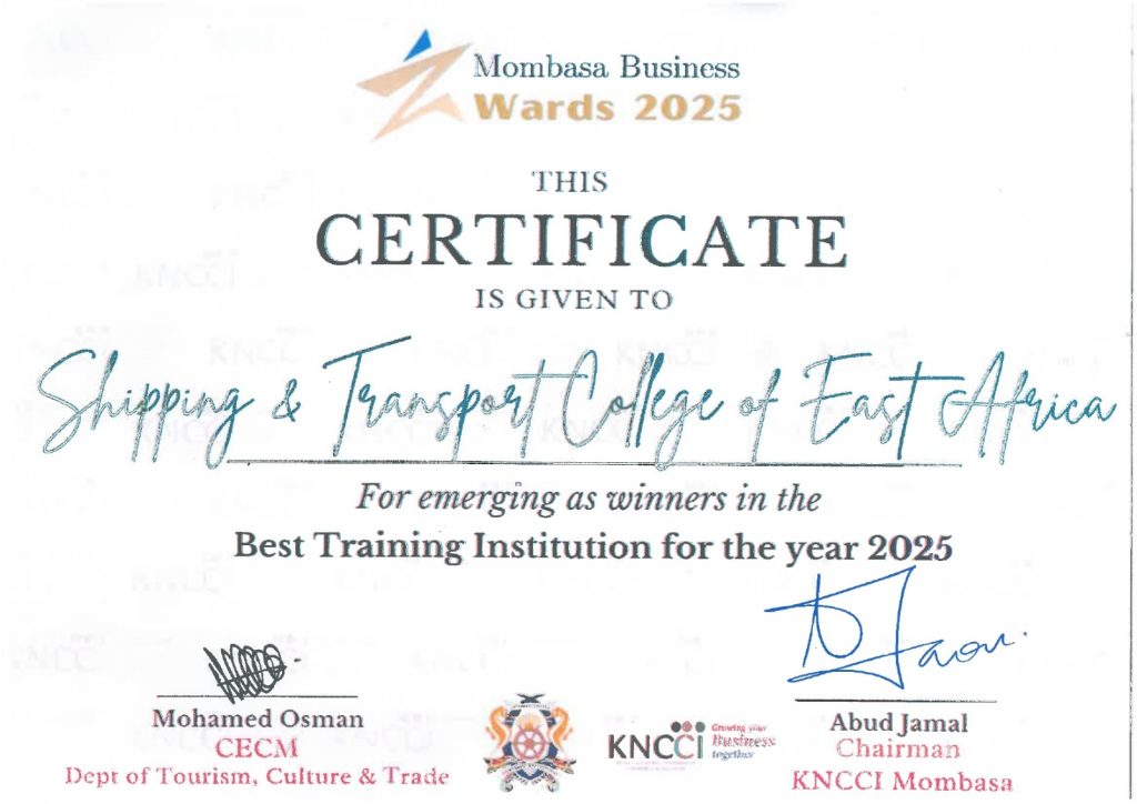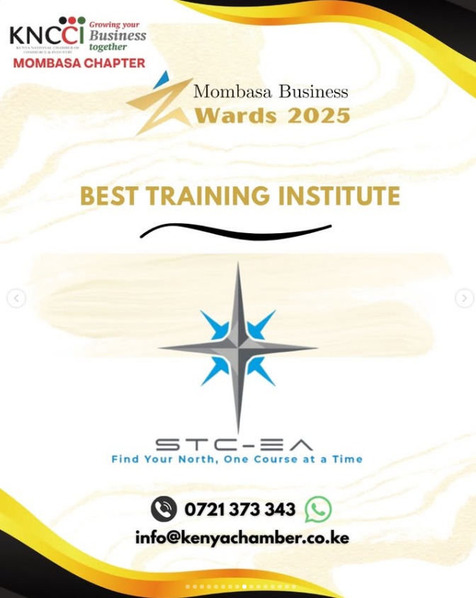 STC-EA is proud to be recognized as the Best Training Institution at the Mombasa Business Awards.This achievement highlights our commitment to delivering high-quality, industry-focused training and empowering professionals with the skills they need to succeed. We thank our students, partners, and community for their trust and support as we continue to lead in training excellence.